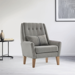Contemporary Tufted Fabric Accent Chair with Wooden Legs