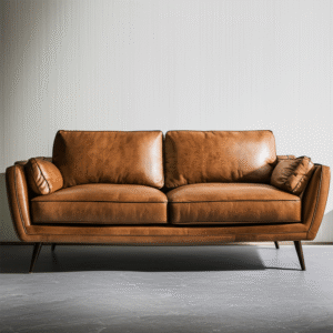 Mid-Century Modern Tan Leather 3-Seater Sofa